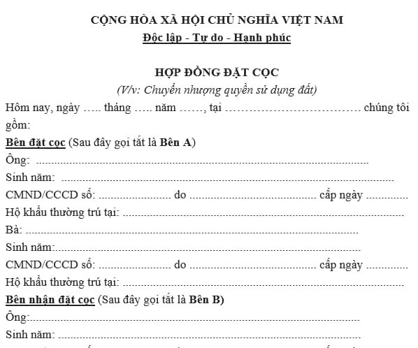 Mẫu hợp đồng đặt cọc mua bán quyền sử dụng đất năm 2023?