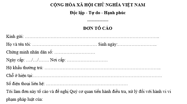 Mẫu đơn tố cáo lừa đảo chiếm đoạt tài sản