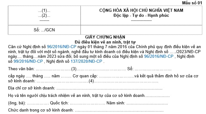 Mẫu Giấy chứng nhận đủ điều kiện về an ninh trật tự năm 2023?